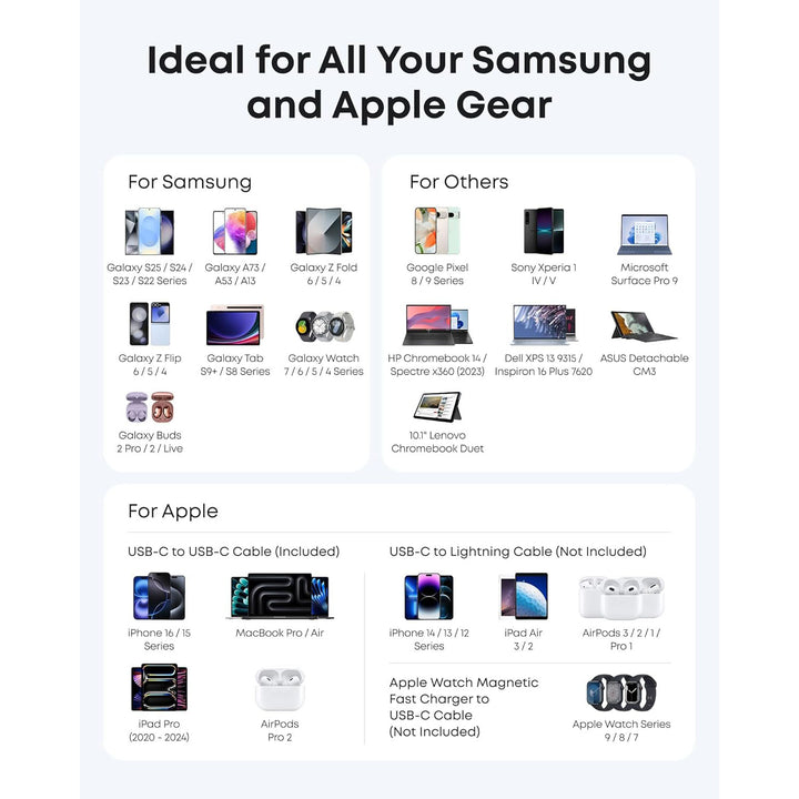 Perfect for phones, tablets, and laptops, it supports multiple power outputs (5V / 9V / 15V / 20V) with PowerIQ smart charging for maximum compatibility.