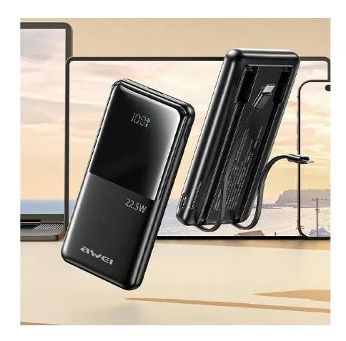Stay powered wherever you go with the Awei P76K 10000mAh Power Bank — engineered for 22.5W dual-cable fast charging and multi-device convenience. Designed for travelers, commuters, and busy professionals, it lets you charge up to four devices simultaneously without compromising speed or safety.
