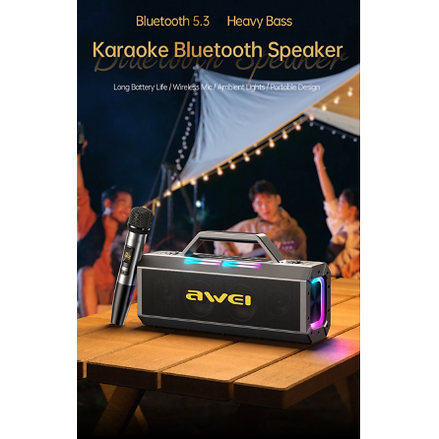 استمتع بصوت قوي وإضاءة مذهلة مع Awei KT8 Bluetooth Speaker المصمم خصيصًا للحفلات والفعاليات والاستخدام الاحترافي. يقدم قدرة 120 وات من خلال مكبرَي صوت 4 بوصة و2 بوصة مع لوحين اهتزاز مزدوجين لصوت بيس عميق ونغمات واضحة تمامًا.