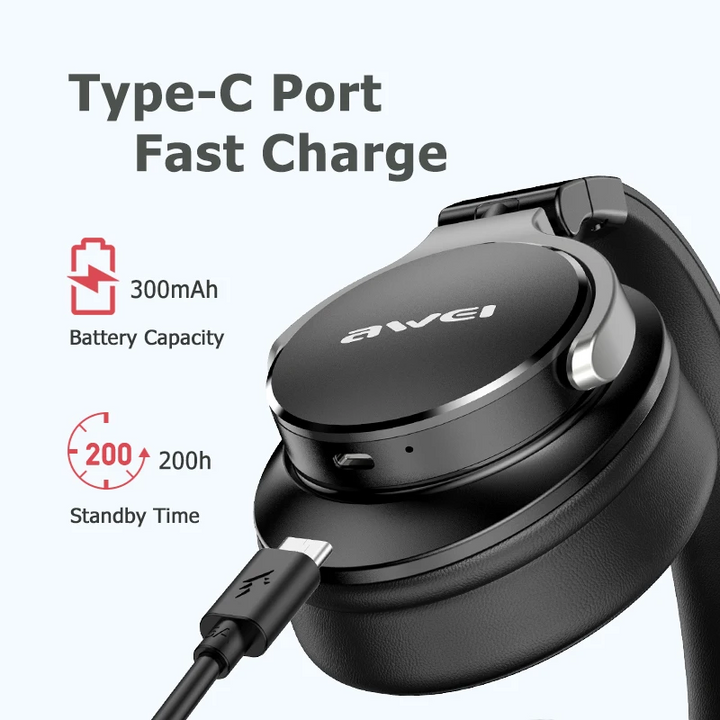 Experience powerful sound and peace with the Awei A710BL — designed for premium comfort and crystal-clear audio. These over-ear wireless headphones feature advanced Active Noise Cancelling (ANC) technology that blocks unwanted background noise, making them ideal for travel, gaming, or work.