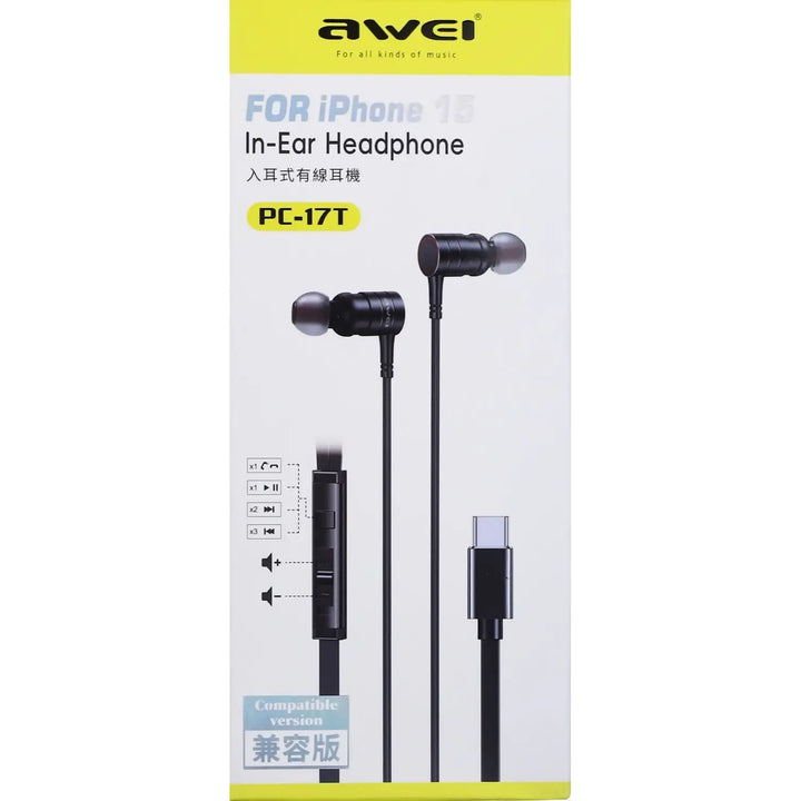 Experience crystal-clear sound and premium comfort with the Awei PC-17T Type-C Earphones — designed for users who demand both quality and durability.