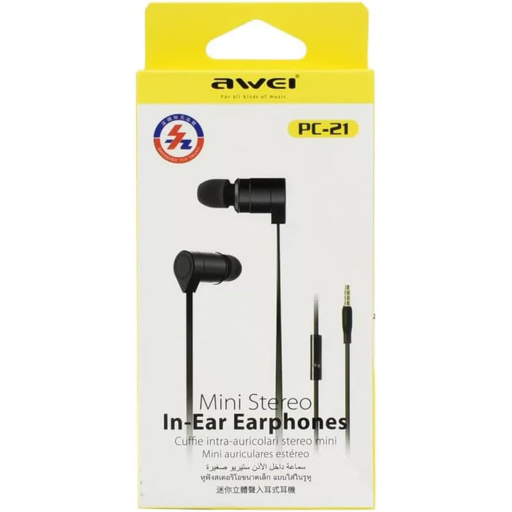 Experience superior sound and comfort with the Awei PC-21 wired earphones. Designed with CNC metal construction and TPE silicone gel, these earphones deliver durability and style while providing crystal-clear audio.