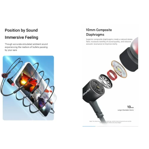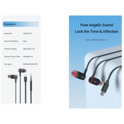 Experience crystal-clear sound and powerful bass with the Awei PC9T Type-C In-Ear Earphones.