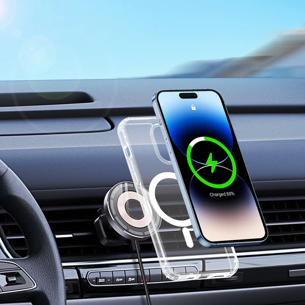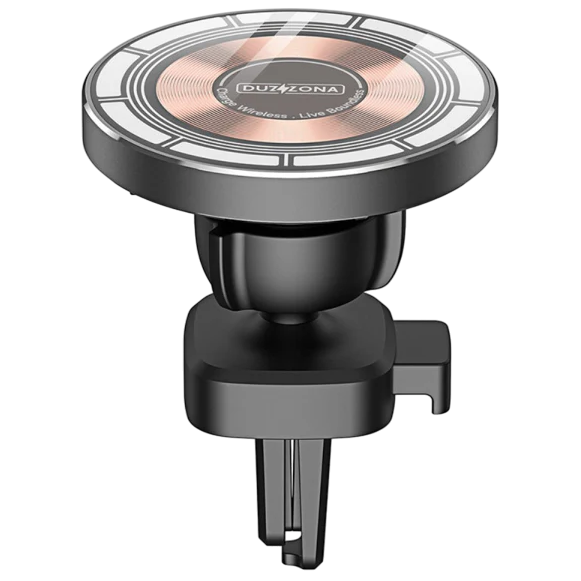Stay powered on the road with the DUZZONA 15W Magnetic Wireless Car Charger. Designed for ultimate convenience, it features strong magnetic alignment, 360° rotation for perfect viewing angles, and fast wireless charging for your MagSafe-compatible smartphone. The stylish RGB indicator light adds a modern touch to your car’s interior.