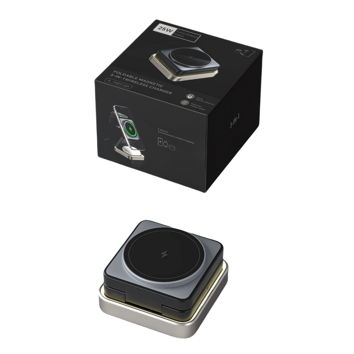 Charge all your devices effortlessly with the 25W Foldable Magnetic 3-in-1 Wireless Charger, designed for modern convenience and style.