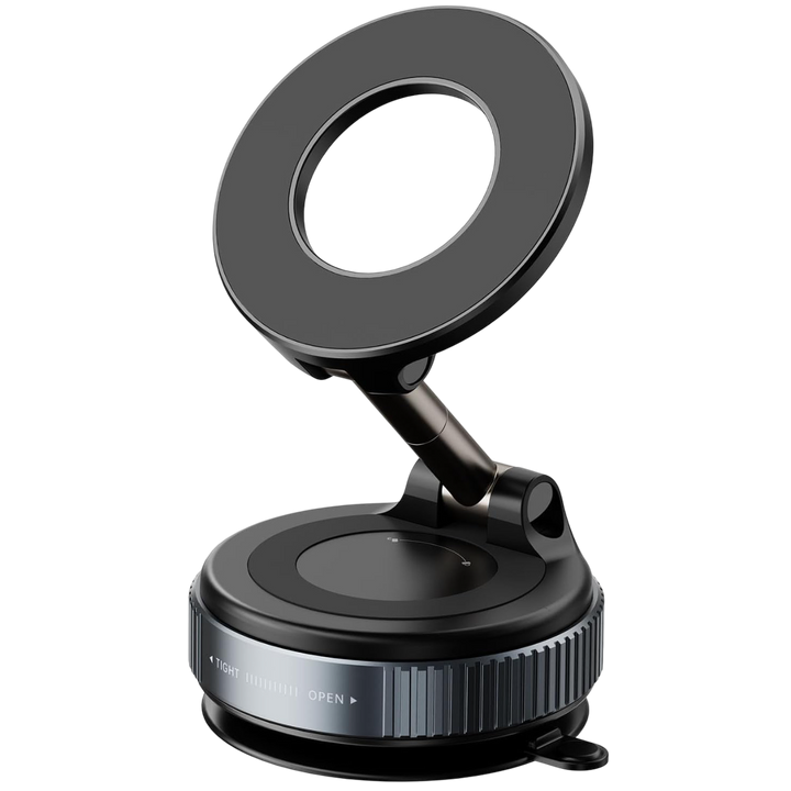Keep your phone safe, visible, and secure with this premium magnetic vacuum suction car phone holder. Designed with a strong suction base and powerful magnetic grip, it attaches firmly to dashboards, windshields, and smooth surfaces without leaving residue. The 360° rotation and adjustable arm let you position your phone at the perfect angle for navigation, calls, or music. Its foldable and compact design makes it easy to store or carry, making it an ideal choice for drivers who value convenience and safety.