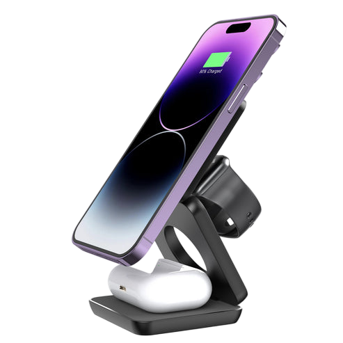 3-in-1 Charging: Simultaneous charging for phone, watch, and earbuds
