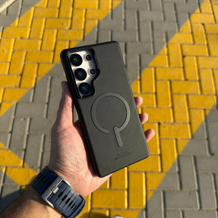 Experience premium protection and style with the HDD Leather MagSafe Case — crafted with a soft-touch leather texture and a sleek metallic MagSafe ring for fast, stable wireless charging. Designed with precision to fit the Samsung S24 , S25 Ultra, this case combines luxury aesthetics with practicality, giving your phone a professional and elegant look while ensuring maximum protection from drops and scratches.