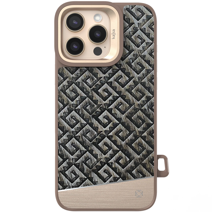 Upgrade your phone's style with this bold metallic maze-patterned case. Featuring a sleek aluminum plate and premium synthetic leather finish, it delivers a perfect balance of fashion and protection. The eye-catching textured design makes it ideal for those who like to stand out without compromising on durability.