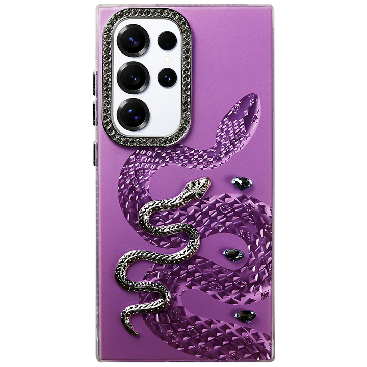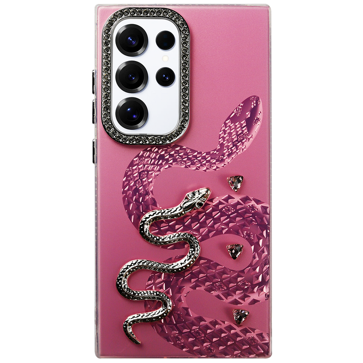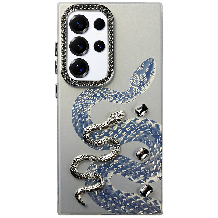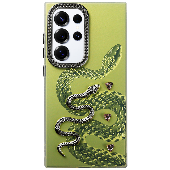 The Luxury Snake Design Case brings a bold, elegant touch to your Samsung. Featuring a 3D embossed snake with sparkling rhinestone accents and a crystal-studded camera frame, this case perfectly blends fashion and protection. Designed to turn heads, it offers a snug fit, scratch resistance, and a soft-touch grip.