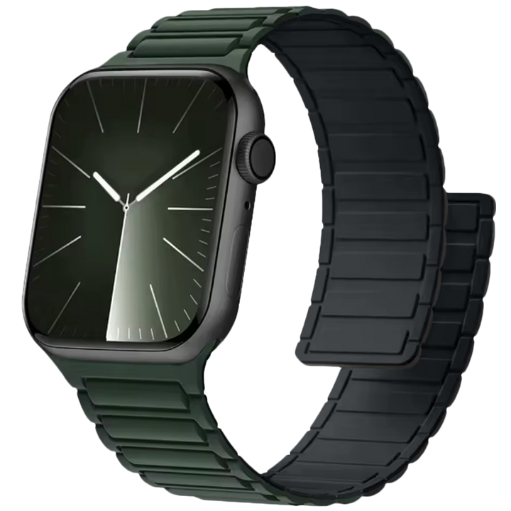Give your Apple Watch a bold new look with this magnetic link band, crafted for style, strength, and comfort. Its modern two-tone design and seamless magnetic closure make it a must-have accessory for those who value both fashion and function.