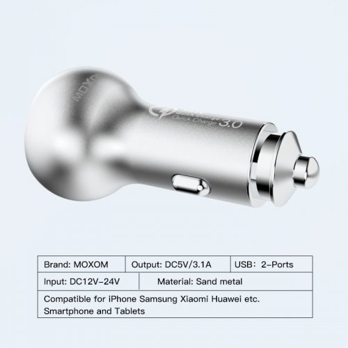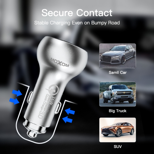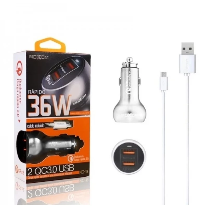 Keep your devices powered on the go with the Moxom 36W Dual USB QC3.0 Car Charger. Designed with dual USB ports, it supports Qualcomm Quick Charge 3.0 for lightning-fast charging of two devices simultaneously. Its compact and durable design ensures stability even on bumpy roads, while the included charging cable makes it convenient for immediate use. Perfect for smartphones, tablets, and other USB-powered devices, this charger delivers safe, efficient, and reliable charging every time you’re on the move.