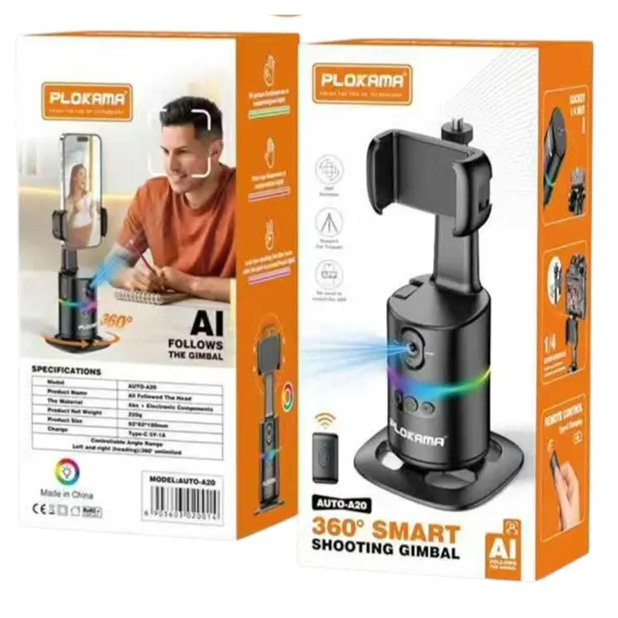 ارتقِ بصناعة المحتوى مع Plokama Auto-A20 360 Smart Shooting Gimbal. مصمم خصيصًا للكرييتورز، الفلوجرز، والبث المباشر، الجيمبال الذكي ده بيتتبع حركتك أوتوماتيكياً وبيضمنلك لقطات سلسة وحيوية في كل مرة. مع دوران كامل 360°، مش هيفوتك أي زاوية.