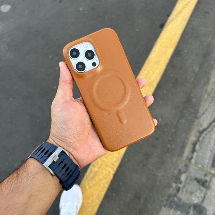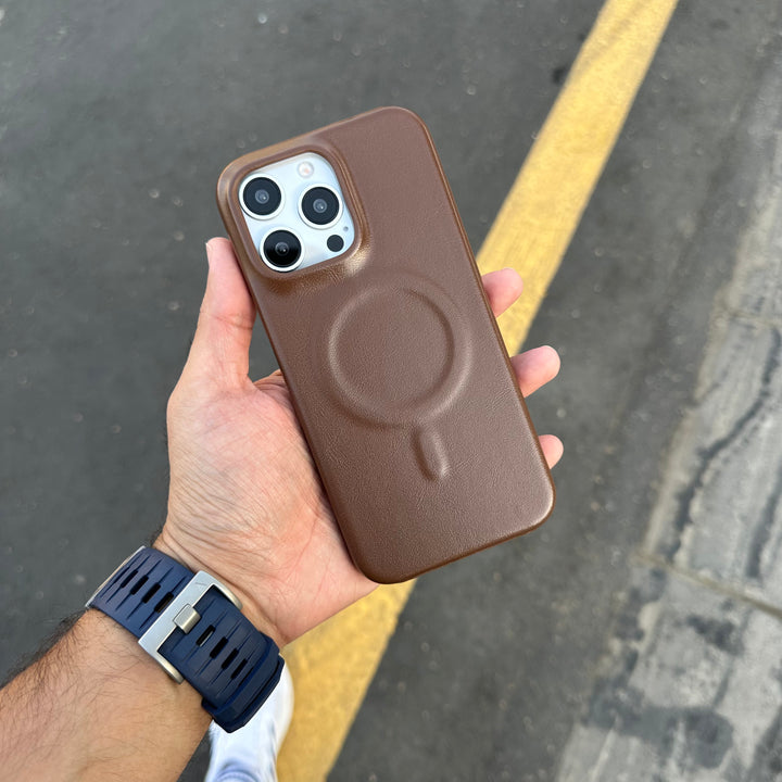Upgrade your iPhone protection with this sleek leather MagSafe cover. Designed with precision for a perfect fit, it combines luxury style with everyday durability. The premium leather finish gives your phone a classy look while offering a comfortable grip.