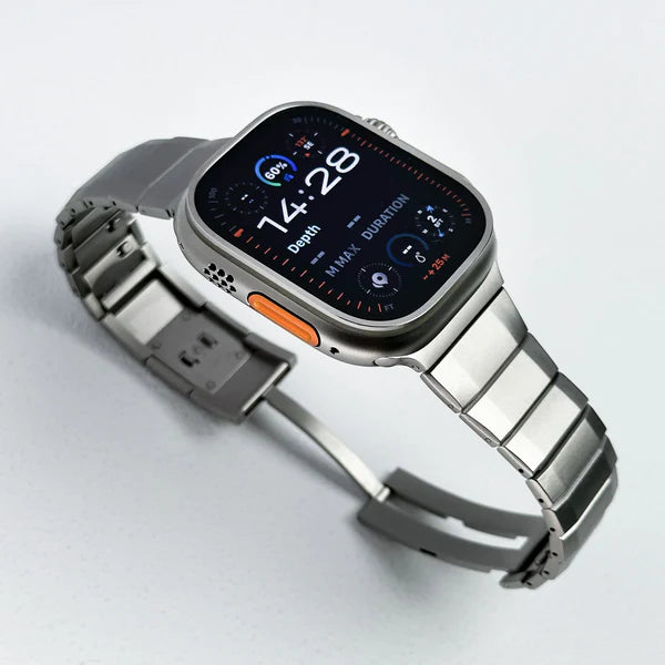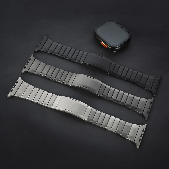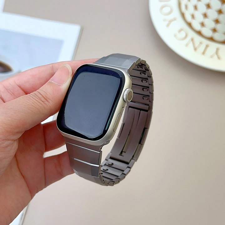 The bracelet is resistant to scratches and fading, maintaining its premium shine even with daily use. Available in multiple finishes like black, silver, and titanium grey — this band is the perfect upgrade for your Apple Watch.