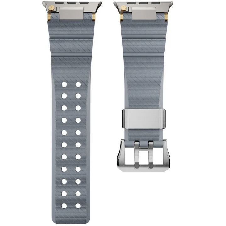 Its breathable perforated design keeps your wrist cool, while the raised edges and robust hardware deliver the same tough aesthetic found on premium outdoor watch bands.
