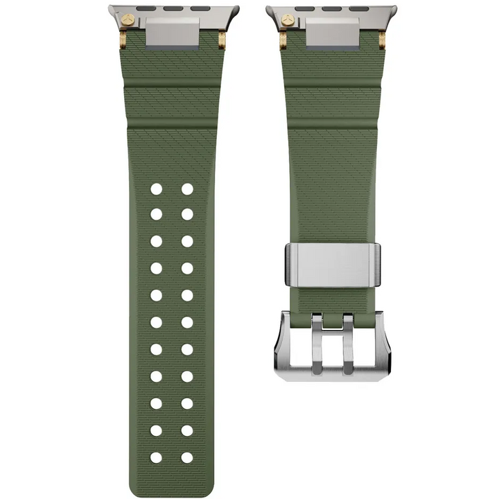 Its breathable perforated design keeps your wrist cool, while the raised edges and robust hardware deliver the same tough aesthetic found on premium outdoor watch bands.