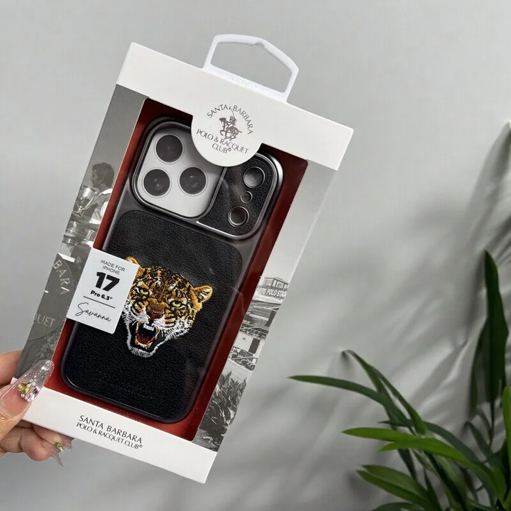 The Santa Barbara Polo & Racquet Club Embroidered Animal Case for iPhone 17 Pro Max combines premium craftsmanship with a bold, luxurious design.
