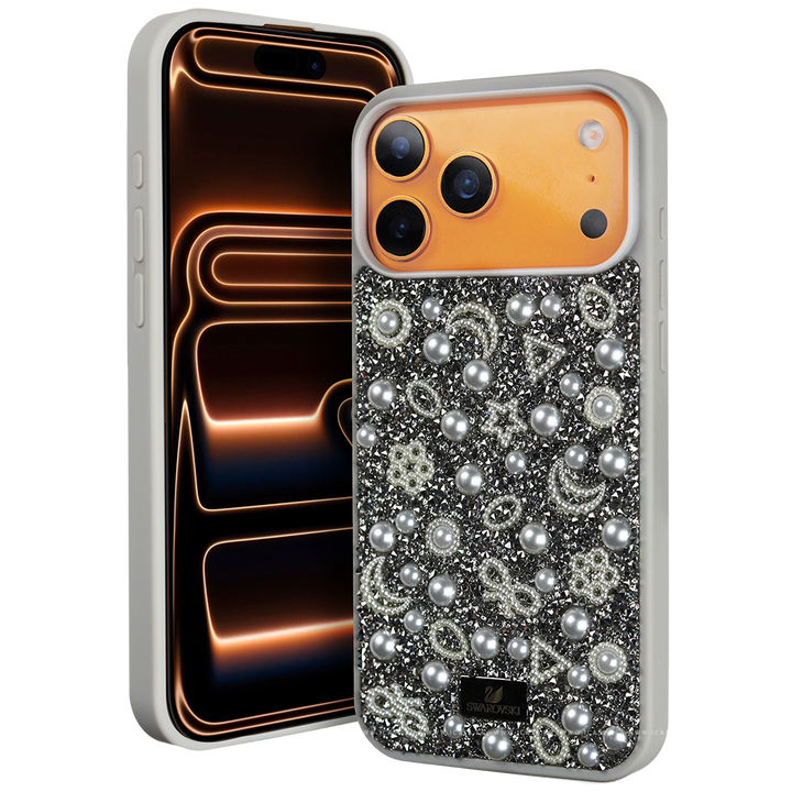The Swarovski Signature Crystal Case features a richly embellished surface packed with high-clarity crystals arranged in intricate premium patterns that draw the eye instantly.
