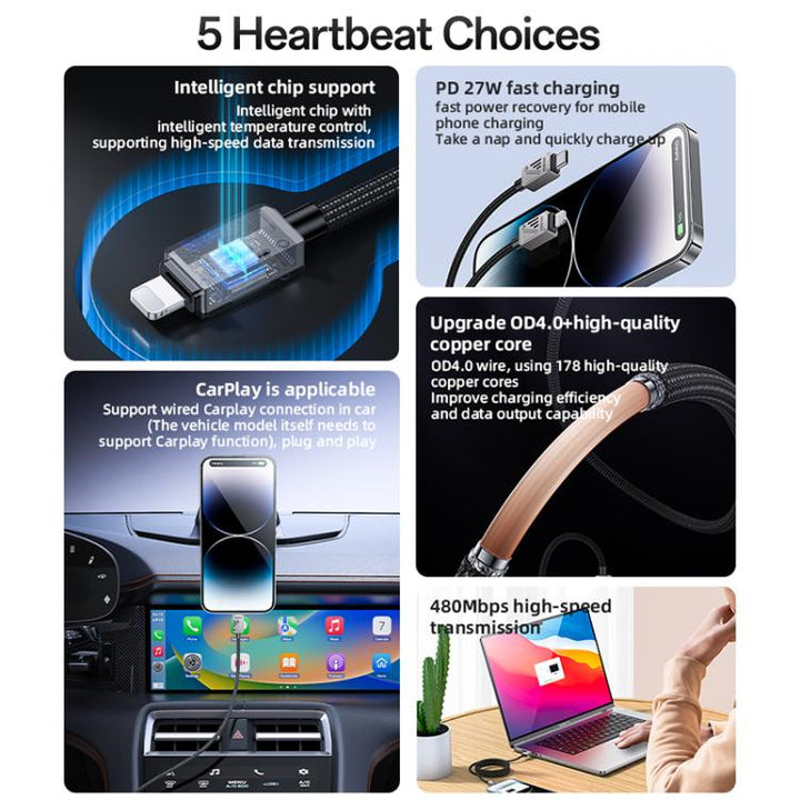 Made from nylon braided cable + TPE + aluminum alloy for maximum strength and flexibility.
