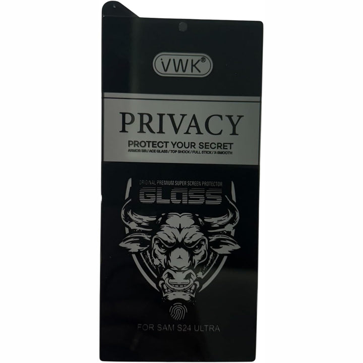 Protect your Samsung S24 Ultra with the VWK Privacy Tempered Glass, engineered for premium protection and complete on-screen privacy. This advanced screen protector features a privacy filter that keeps your display visible only to you, preventing prying eyes from viewing your content in public.