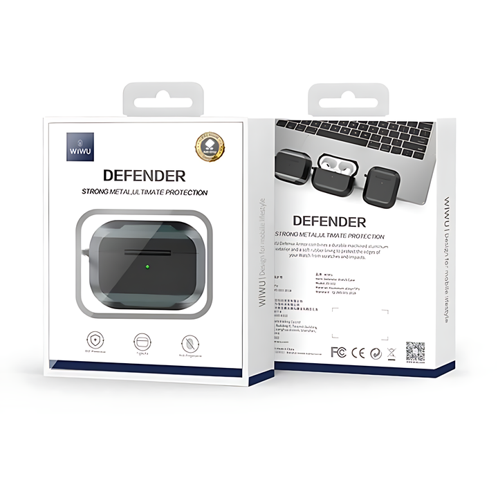 The WiWU Defender Strong Metal Ultimate Protection Case combines a durable machined aluminum exterior and a rubber lining to protect the edges of your AirPods from scratches and impacts. This case offers comprehensive protection, ensuring that your AirPods are safeguarded against everyday wear and tear while maintaining a sleek and stylish appearance.