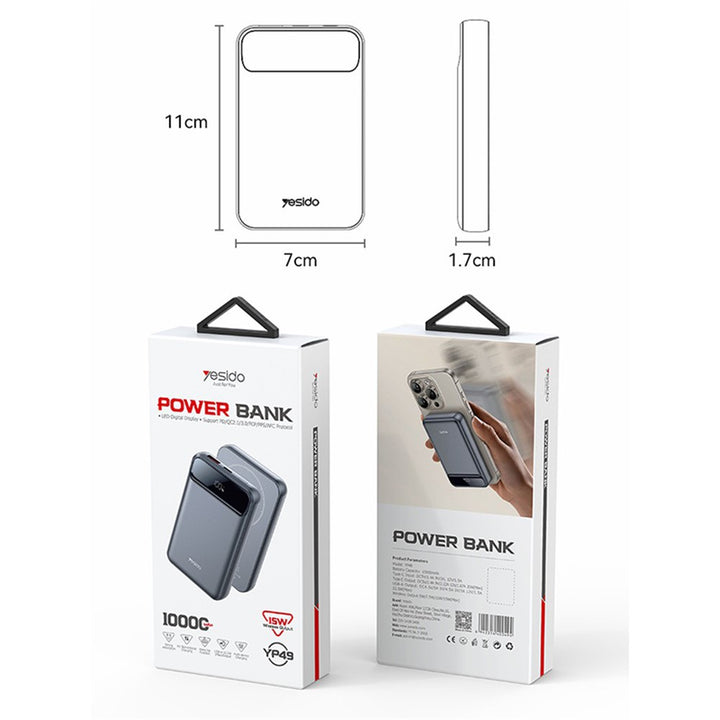 خليك مشحون طول الوقت مع Yesido YP49 10000mAh Power Bank. مصمم للكفاءة وسهولة الحمل، باور بانك نحيف ومدمج بيجمع بين الشحن السريع القوي والتصميم الأنيق.