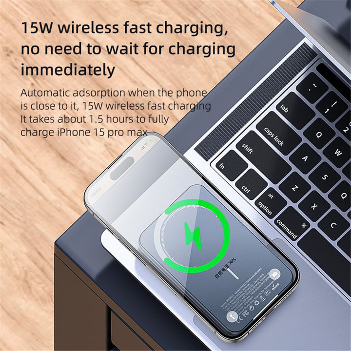 - ⚡ 15W Wireless Charging – Hassle-free charging with fast wireless output for compatible devices.