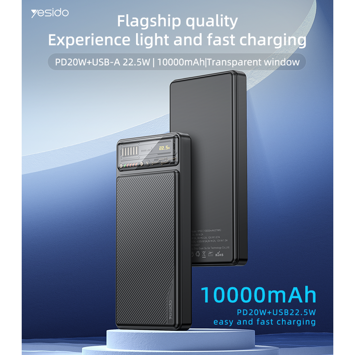Stay powered up wherever you go with the Yesido YP53 10000mAh Power Bank. Designed with durability and efficiency in mind, this power bank ensures your devices stay charged with reliable performance. Featuring a lamp display for real-time battery monitoring, it offers a user-friendly and stylish solution for daily charging needs.
