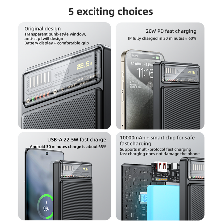 - ⚡ 20W Fast Charging – USB-A port supports up to 22.5W PD fast charging for quick energy boosts.
