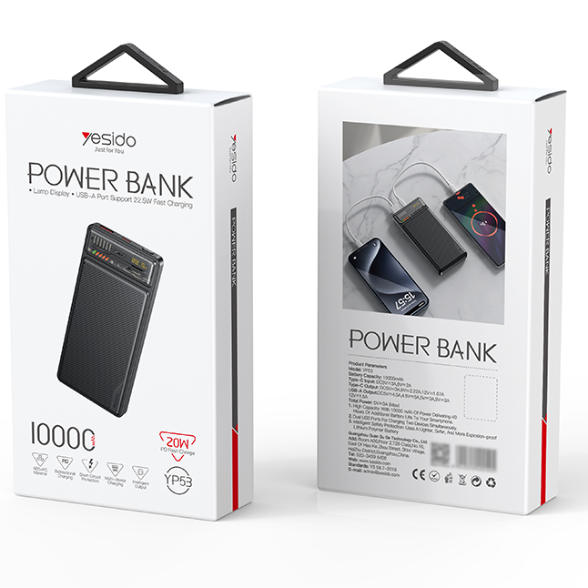 خليك مشحون في أي مكان مع Yesido YP53 10000mAh Power Bank. مصمم للمتانة والكفاءة، باور بانك ده بيضمن شحن أجهزتك بأداء موثوق. مزود بـشاشة لمبة لمتابعة البطارية في الوقت الحقيقي، وبيوفرلك حل عملي وأنيق لاحتياجات الشحن اليومية.