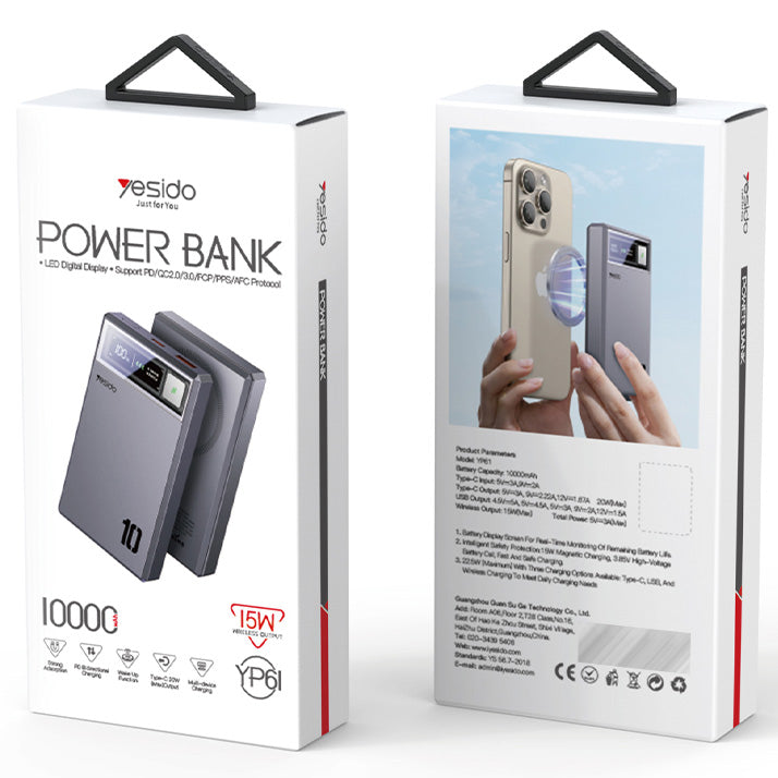 Stay powered up on the go with the Yesido YP61 10000mAh Magnetic Wireless Power Bank. Designed for convenience and efficiency, this power bank combines high capacity with advanced wireless charging technology, ensuring your devices are always ready. The slim, modern design and strong magnetic hold make it perfect for iPhones and MagSafe-compatible devices.