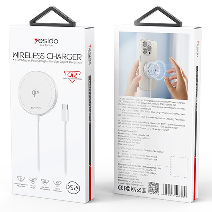 Experience effortless and efficient charging with the Yesido DS24 15W Magnetic Fast Wireless Charger — a sleek and powerful charging pad designed for modern users. Built with Qi2 certification, it ensures superior safety, compatibility, and fast charging for your MagSafe-enabled devices.