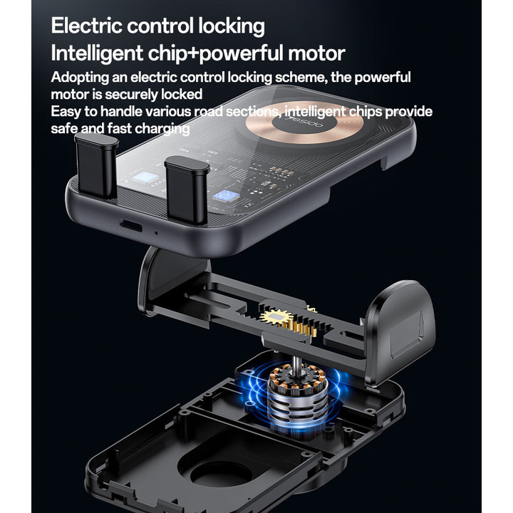 Experience next-level convenience with the Yesido C307 Wireless Charging Car Holder — designed for modern drivers who value both performance and style. This innovative holder combines 15W fast wireless charging with an automatic electric clamp system that secures your phone effortlessly with a single touch. The transparent tempered glass design brings a sleek, futuristic look to your dashboard, while the 360° adjustable base offers ideal viewing angles for navigation or hands-free calls.