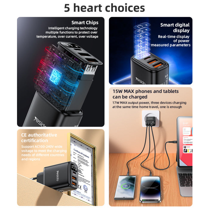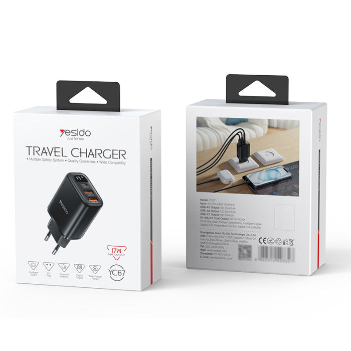 The Yesido YC67 Travel Charger is designed for efficiency and portability, making it perfect for charging multiple devices at home or on the go.
