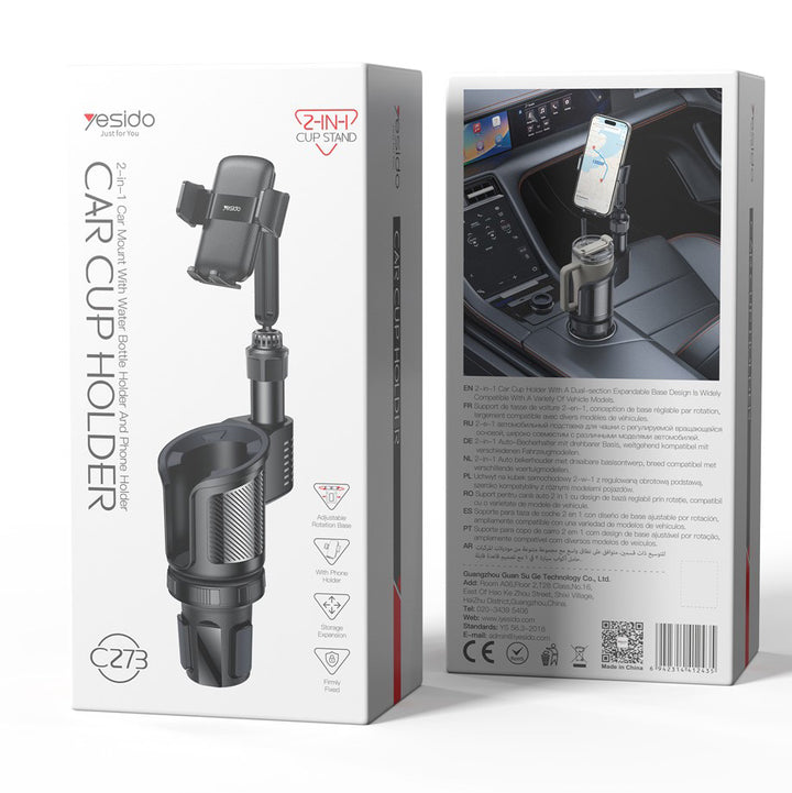 Upgrade your car interior with the Yesido C273 2-in-1 Cup Holder & Phone Mount, designed to provide convenience and stability while driving. This innovative holder combines a secure cup base with an adjustable phone mount, keeping your drink and device easily accessible without compromising safety.