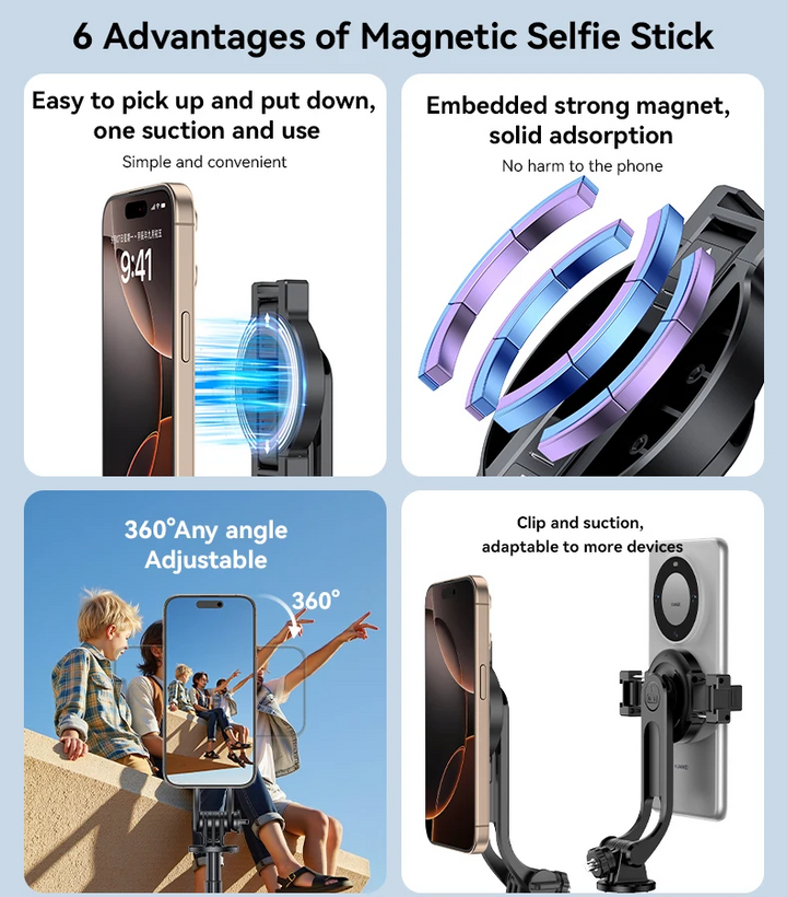 With a telescopic height range of 40cm to 130cm, the SF24 suits solo recording, vlogging, photography, group shots, product videos, and outdoor or desk filming. The dual magnetic + clip holder ensures maximum compatibility with smartphones, gimbals, face-tracking devices, and lightweight cameras.
