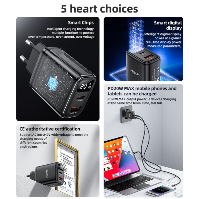Experience efficient and reliable charging with the Yesido YC68 Quick Charger.