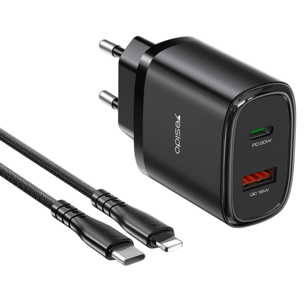استمتع بشحن سريع وفعّال مع Yesido YC4 Dual Port Quick Charger ⚡ — شاحن مصمم لتوفير طاقة آمنة وسريعة لأجهزتك. يحتوي على منفذين USB-A وType-C مما يتيح شحن جهازين في نفس الوقت بقدرة تصل إلى 20W. مصنوع من خامة PC مقاومة للحريق لتوفير حماية من الحرارة الزائدة، الشحن المفرط، وقصر الدائرة. تصميمه المدمج يجعله مثاليًا للاستخدام في المنزل أو المكتب أو أثناء السفر.