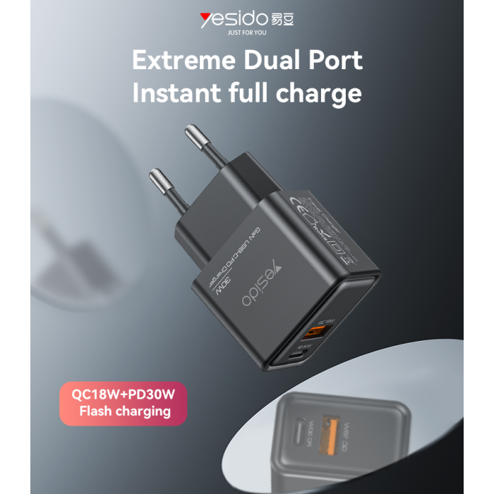 Experience fast and efficient charging with the Yesido YC64 30W GaN Charger, built with advanced Gallium Nitride (GaN) technology