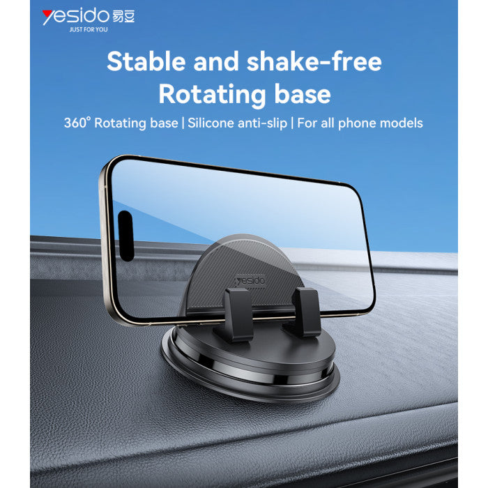 The Yesido C268 is a versatile phone and tablet holder designed for stable and flexible use in your car, home, or office. Its 360° rotating base and adjustable clip allow effortless positioning for the perfect viewing angle, while the strong suction cup provides a firm grip on dashboards, desks, or other smooth surfaces.