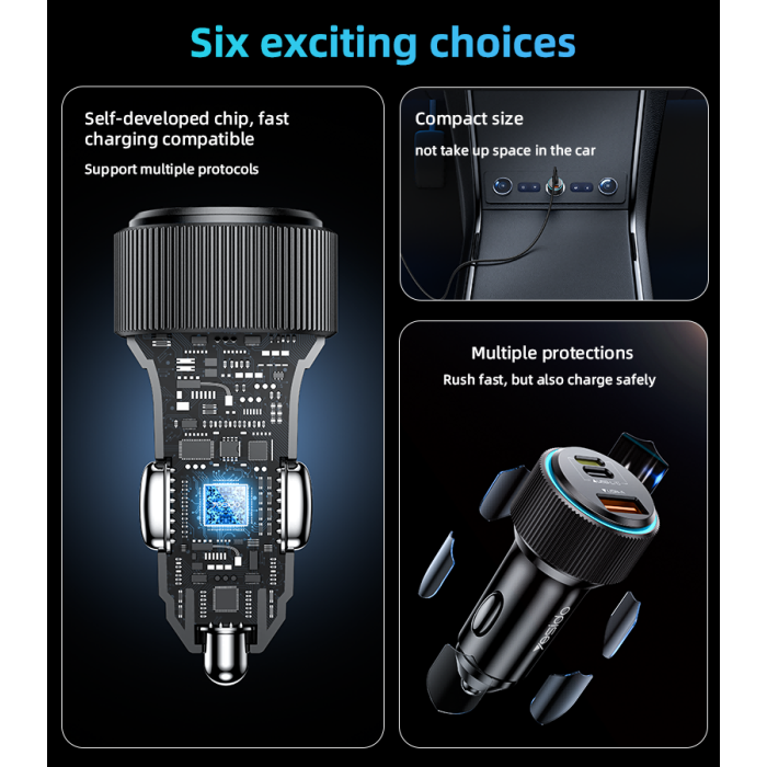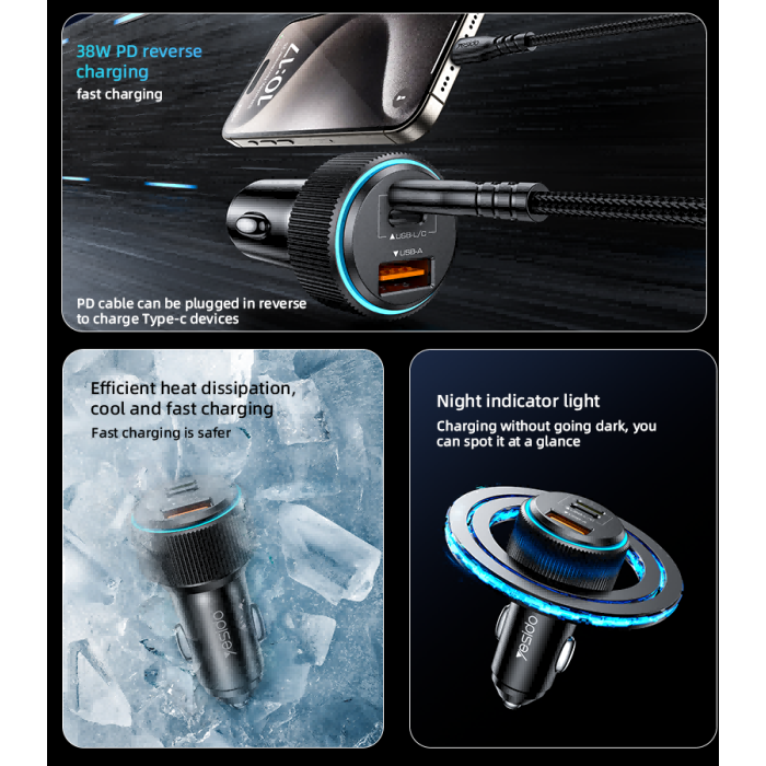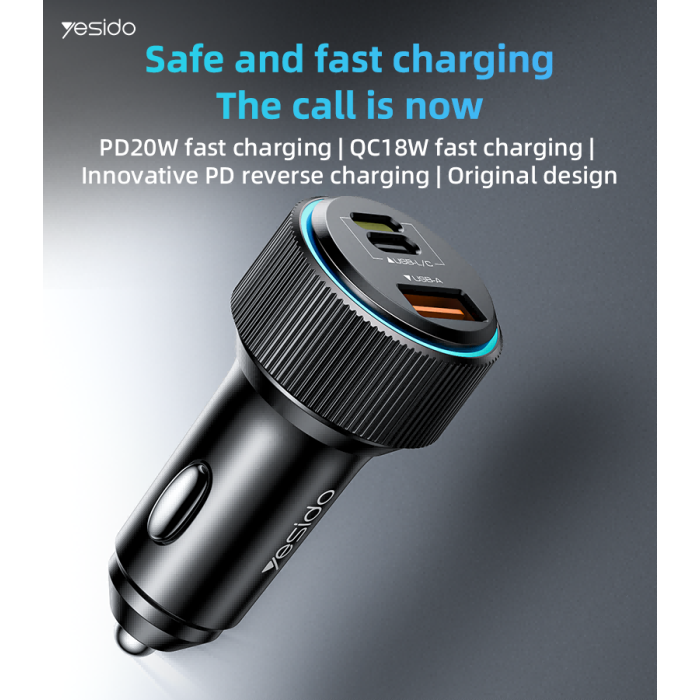 Experience powerful and convenient charging on the go with the Yesido Y60 38W Fast Charging Car Charger.