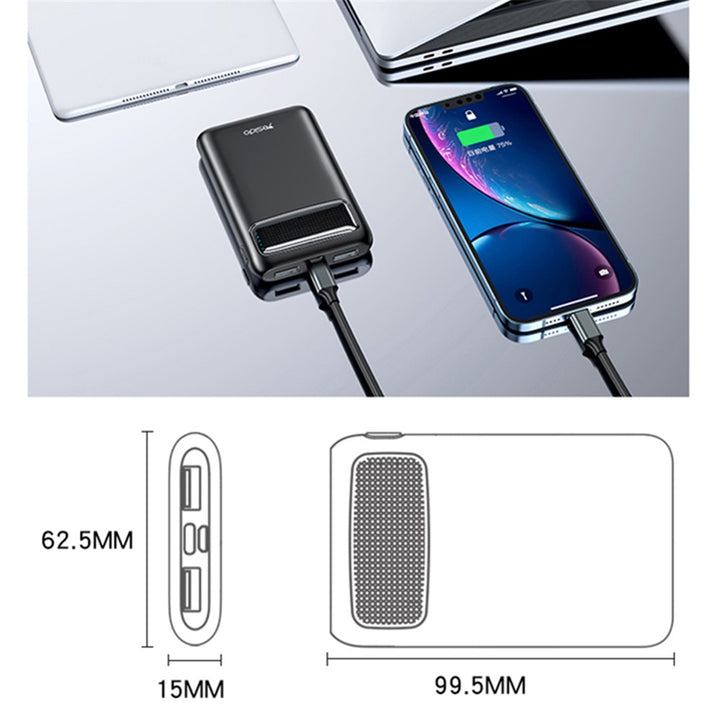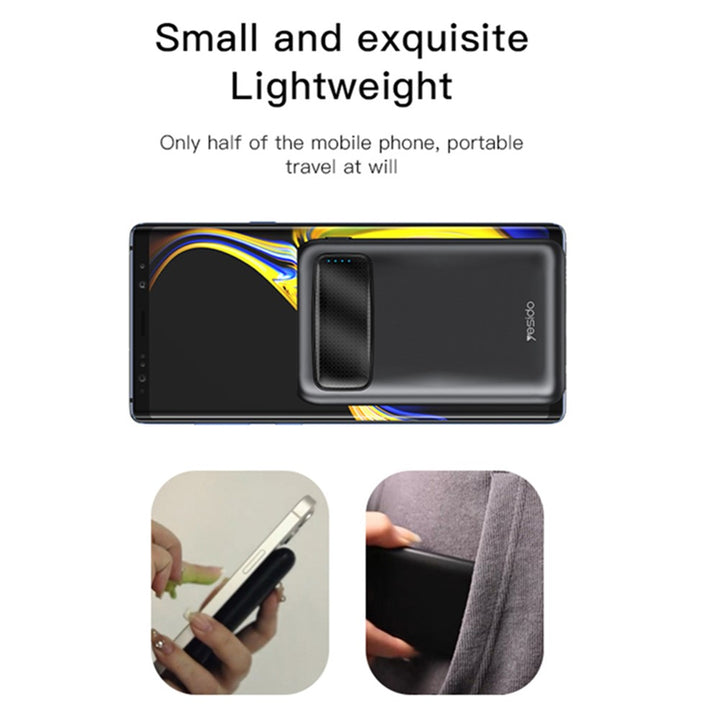 خليك مشحون في أي مكان مع Yesido 5000mAh Compact Travel Power Bank. مصمم للحمل بسهولة والاعتماد عليه، باور بانك نحيف وخفيف الوزن بيضمن إن أجهزتك عمرها ما تفصل منك سواء في السفر، التنقل، أو أيامك المزدحمة.