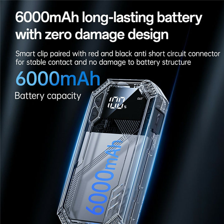 - 🔋 6000mAh Battery Capacity – Functions as a power bank to charge phones, tablets, and other USB devices.