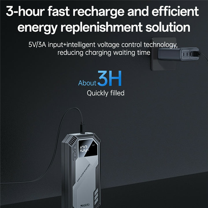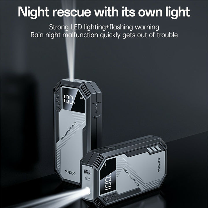 The Yesido VC11 Car Jump Starter is a powerful and compact multi-functional device that ensures you’re always ready for emergencies. Designed for cars, bikes, and SUVs, it combines a 6000mAh high-capacity battery, 800A peak current, and emergency LED lighting for safe and reliable performance on the road.
