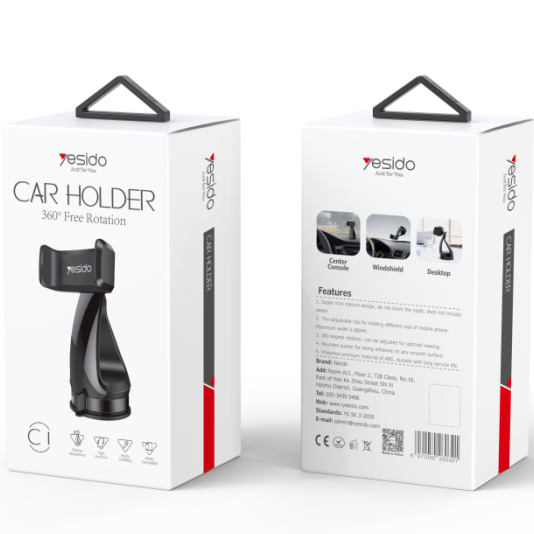 مزود بكوب شفط قوي يلتصق بسهولة بلوحة القيادة أو الزجاج الأمامي.
