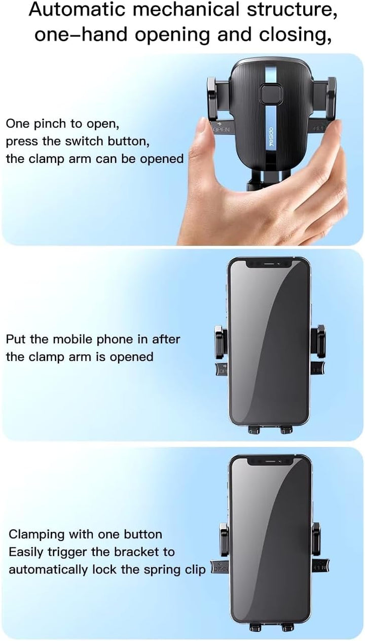Eagle-Mouth Clip: Provides a tight and stable hold on air vent outlets.