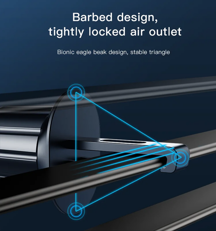 The air vent clip design allows easy rotation — turn clockwise to extend and counterclockwise to retract.