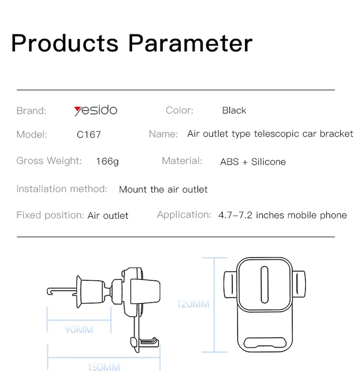 Yesido C167 Air Vent Hook Universal Car Phone Holder with 360° Rotation