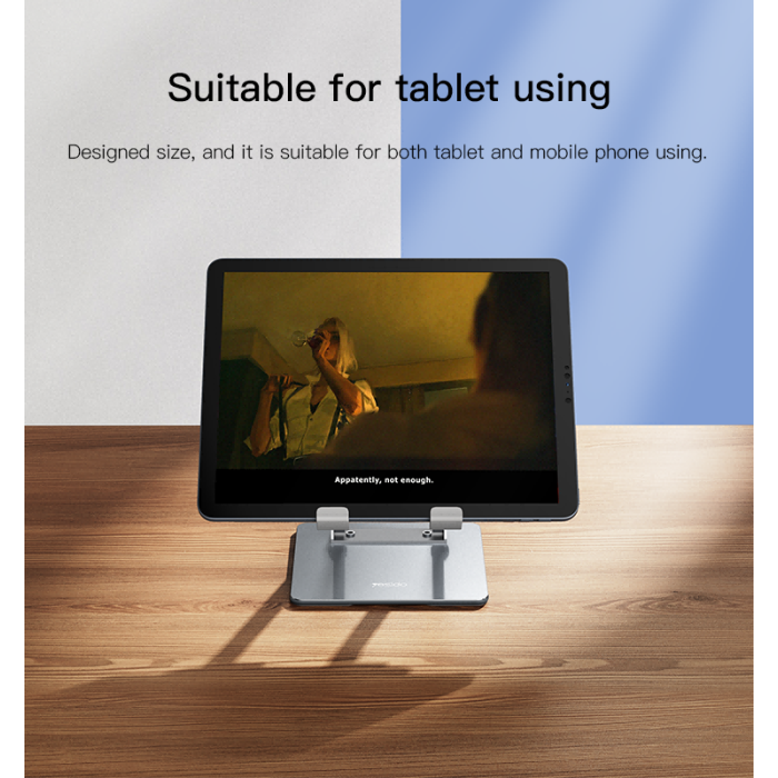 يتميز بتصميم قابل للطي من مرحلتين يتيح ضبط الارتفاع والزاوية بسهولة لتحقيق الوضع المثالي للمشاهدة.